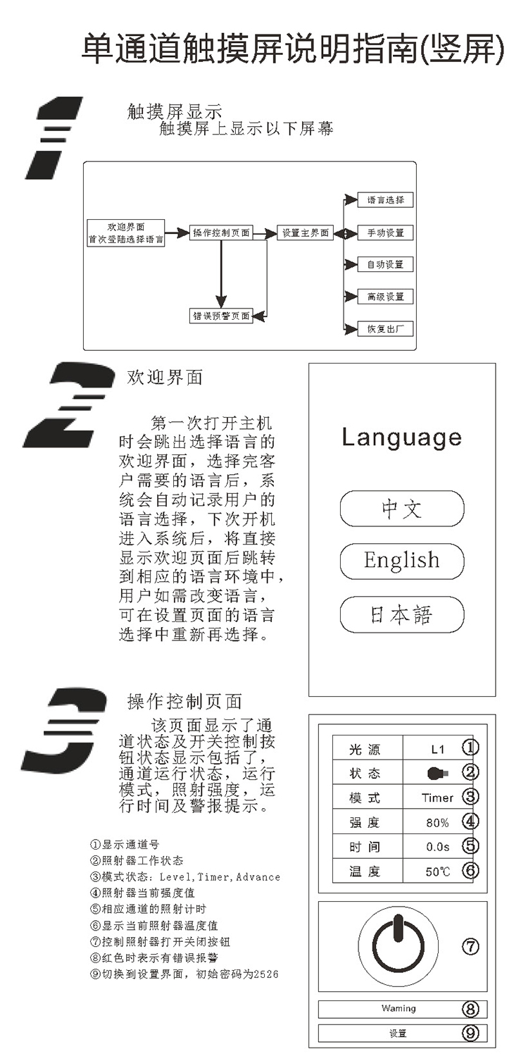 豎屏觸摸屏界面說明詳解(單通道)