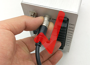 UVLED點光源光頭插入小竅門,照射器尾部箭頭朝上,微微轉動就能插入主機后面的光頭接口。